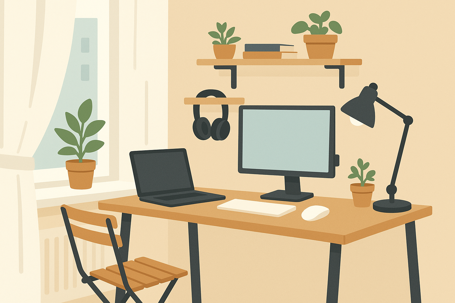 В этом руководстве — только практичные шаги: как выбрать точку в комнате, чем заменить громоздкий стол, как использовать вертикальные поверхности и что даёт кронштейн для монитора. Разберём компактное рабочее место для ноутбука, подоконник-столешницу, трансформируемую мебель, кабель-менеджмент, свет и даже лайфхаки по шуму, если рядом живёт вся семья.